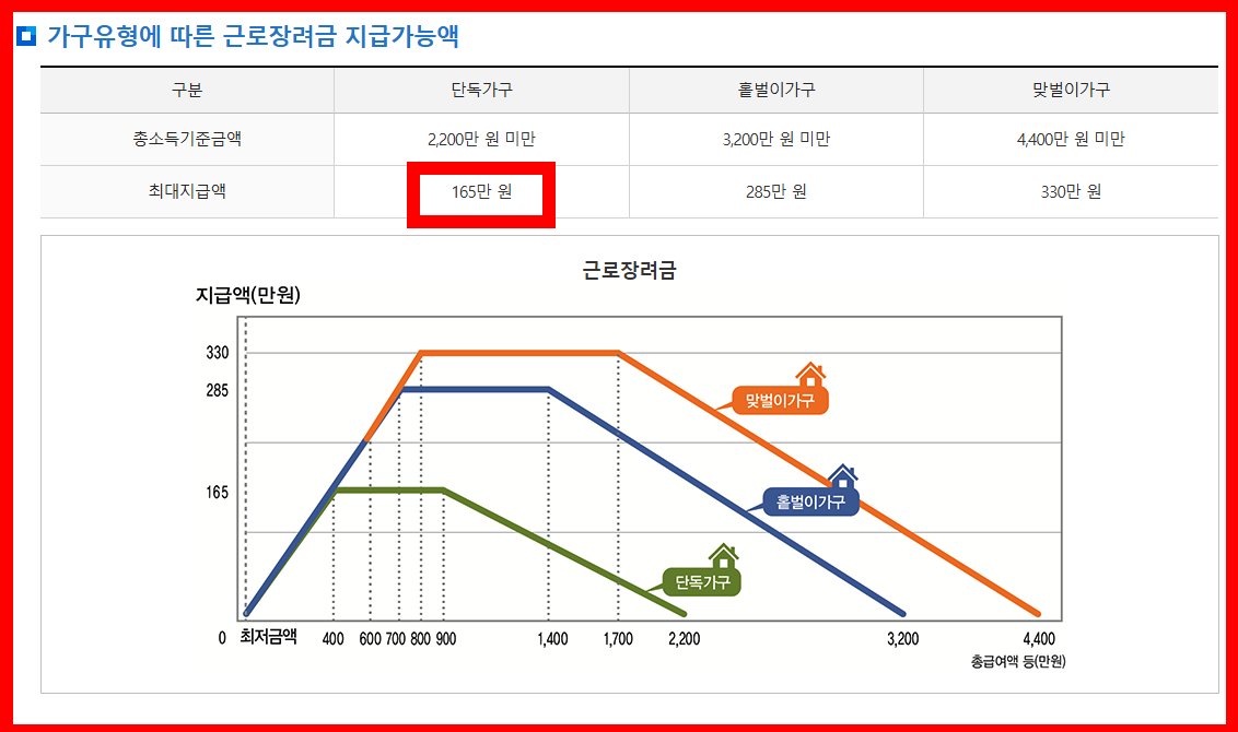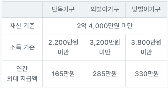 - 단독 가구: 최대 165만 원