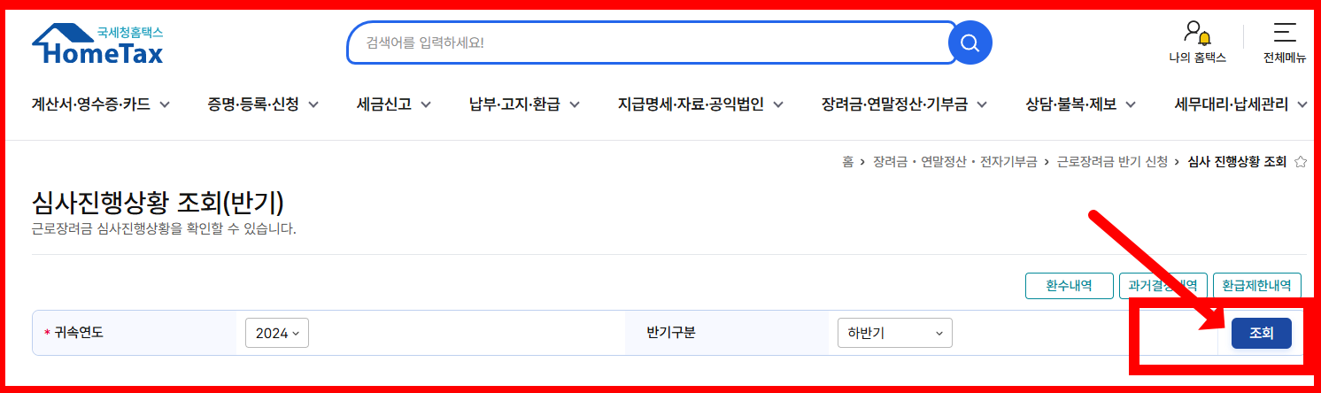 - [근로·자녀장려금 신청 내역 조회] 선택