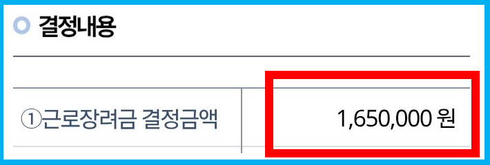 위 단계를 따라가면 나의 근로장려금 지급금액이 얼마인지 쉽게 알 수 있습니다. 신청 기간이 끝난 이후에는 ‘지급결정’ 항목에서 실제 근로장려금 지급금액도 조회 가능합니다.