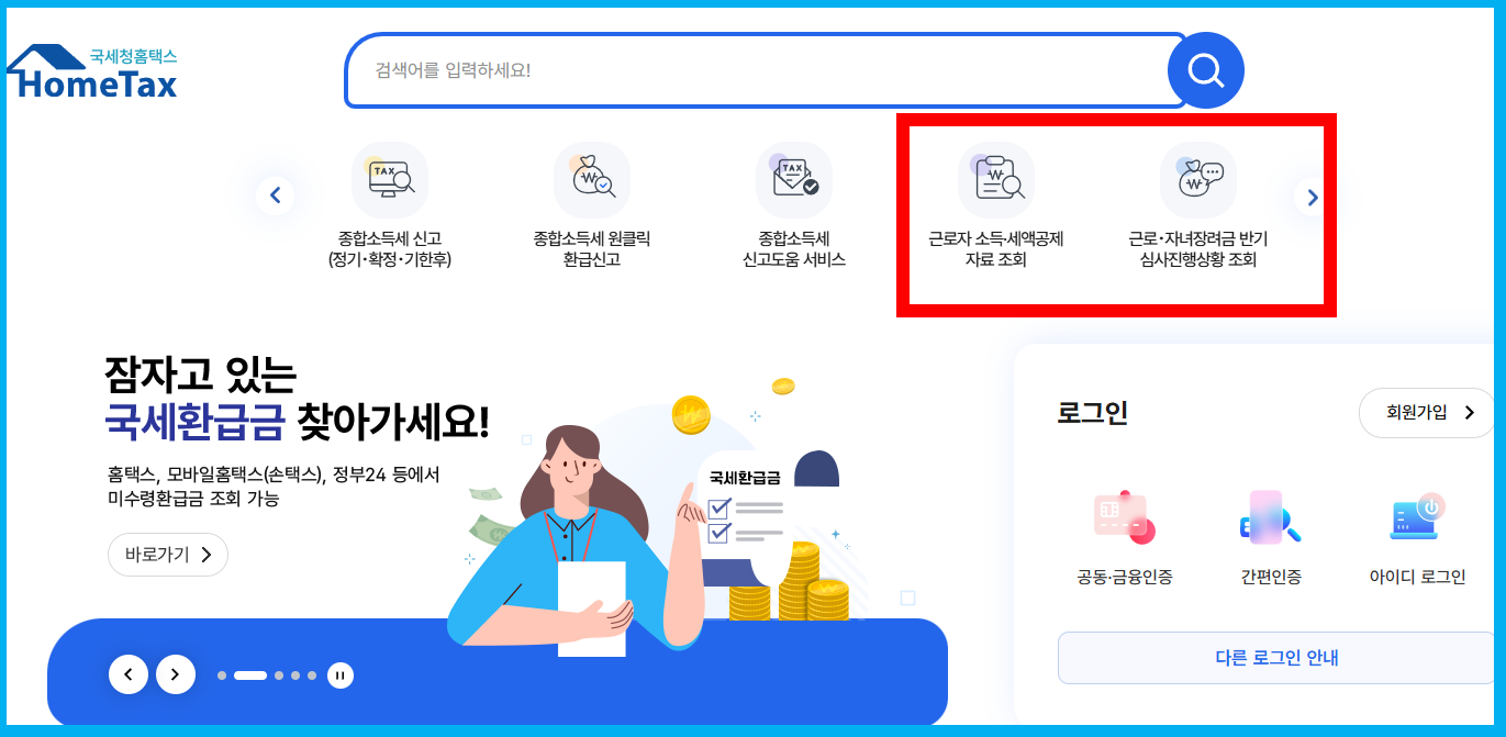 - 홈택스 접속 후 로그인