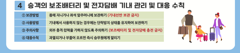 - 100Wh 이하 보조배터리: 4개까지 기내반입 허용