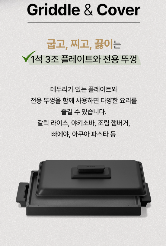 - 구성품: 본체, 플레이트, 기름받이 트레이, 스크래퍼, 설명서 등