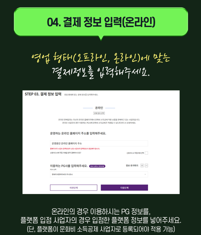 - 반드시 등록된 업체에서 결제 시에만 적용