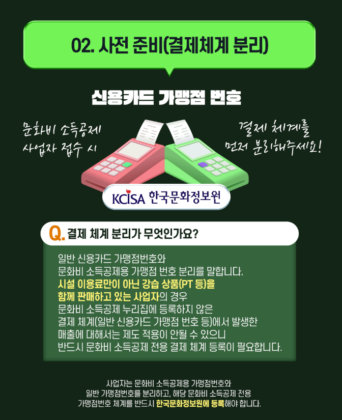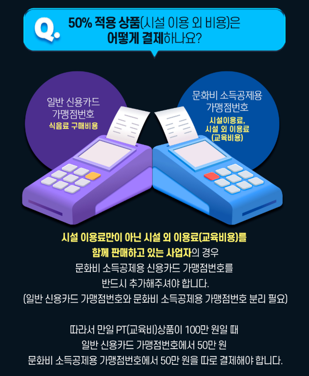 - 운동비용과 기타 결제는 분리 결제해야 공제 적용