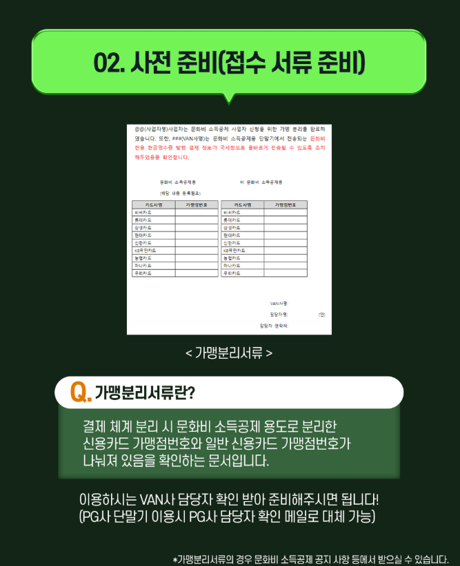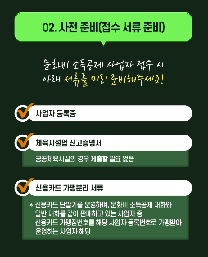 - 필요 서류: 사업자등록증, 체육시설업 신고증명서, 가맹분리 확인서
