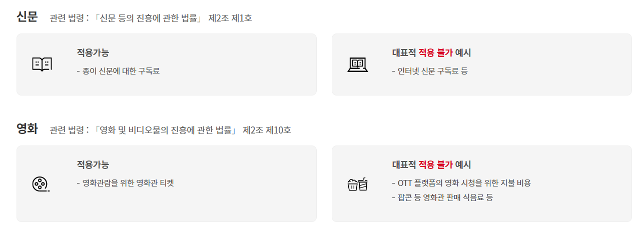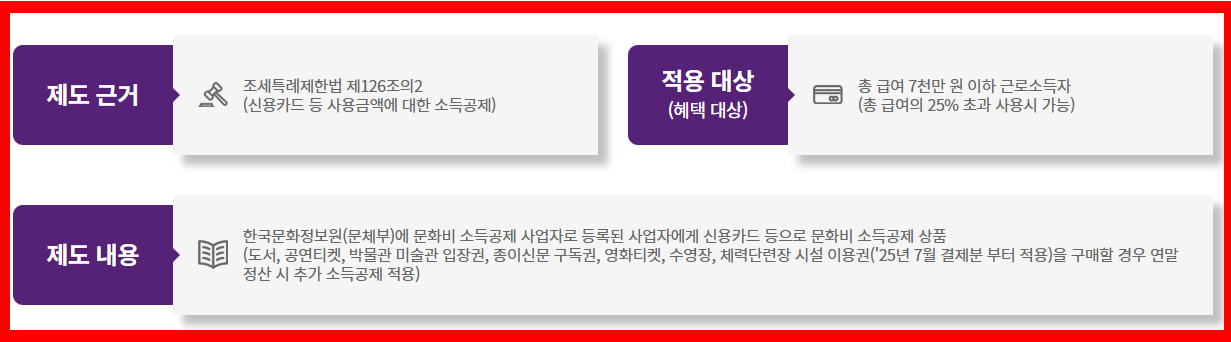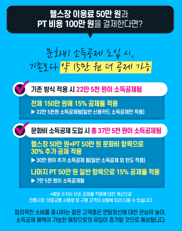 - 기존 도서·영화 등 문화비 소득공제 항목과 합산 적용