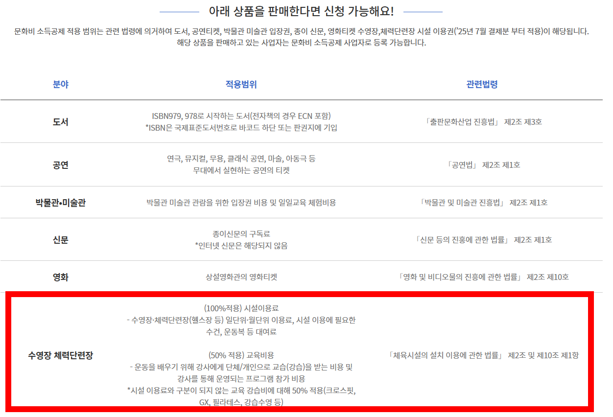 | 적용 시설 | 문화비 소득공제 누리집에 등록된 헬스장, 수영장 |