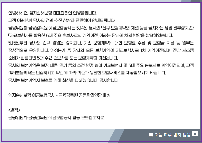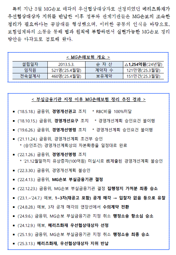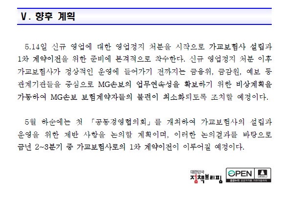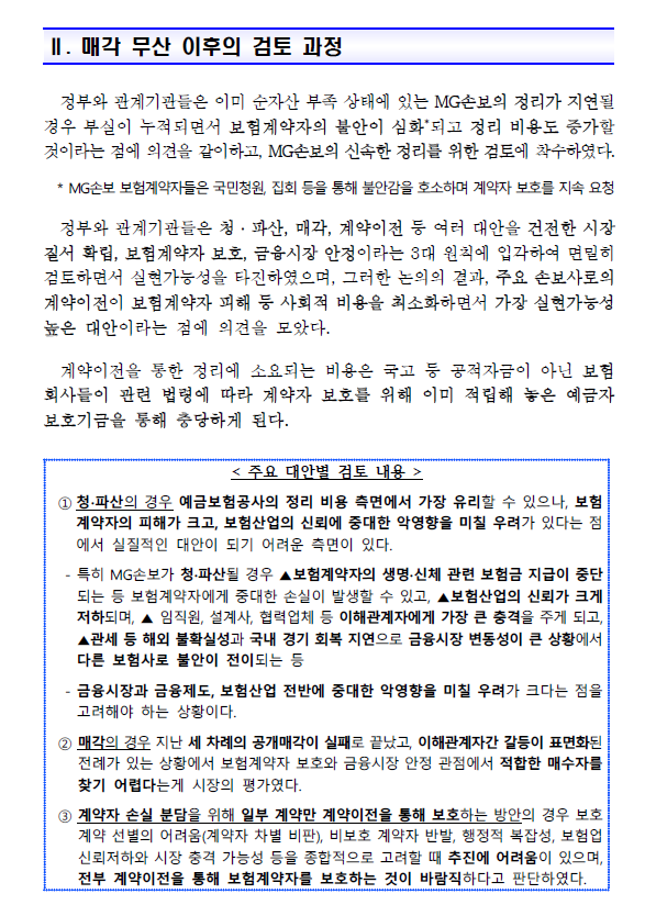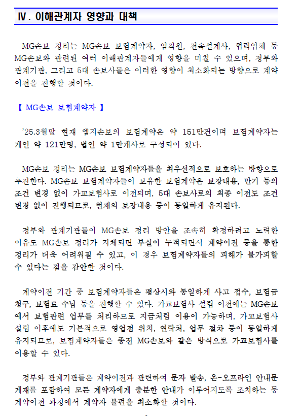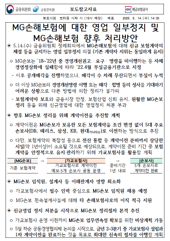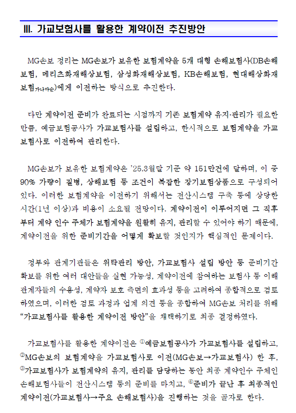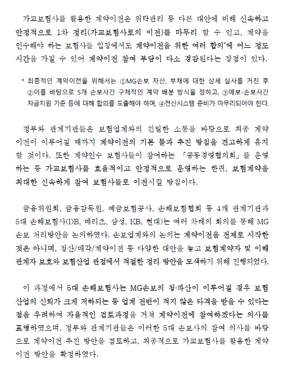 → MG손해보험 파산과 관련된 정책, 보도자료, Q&A 제공